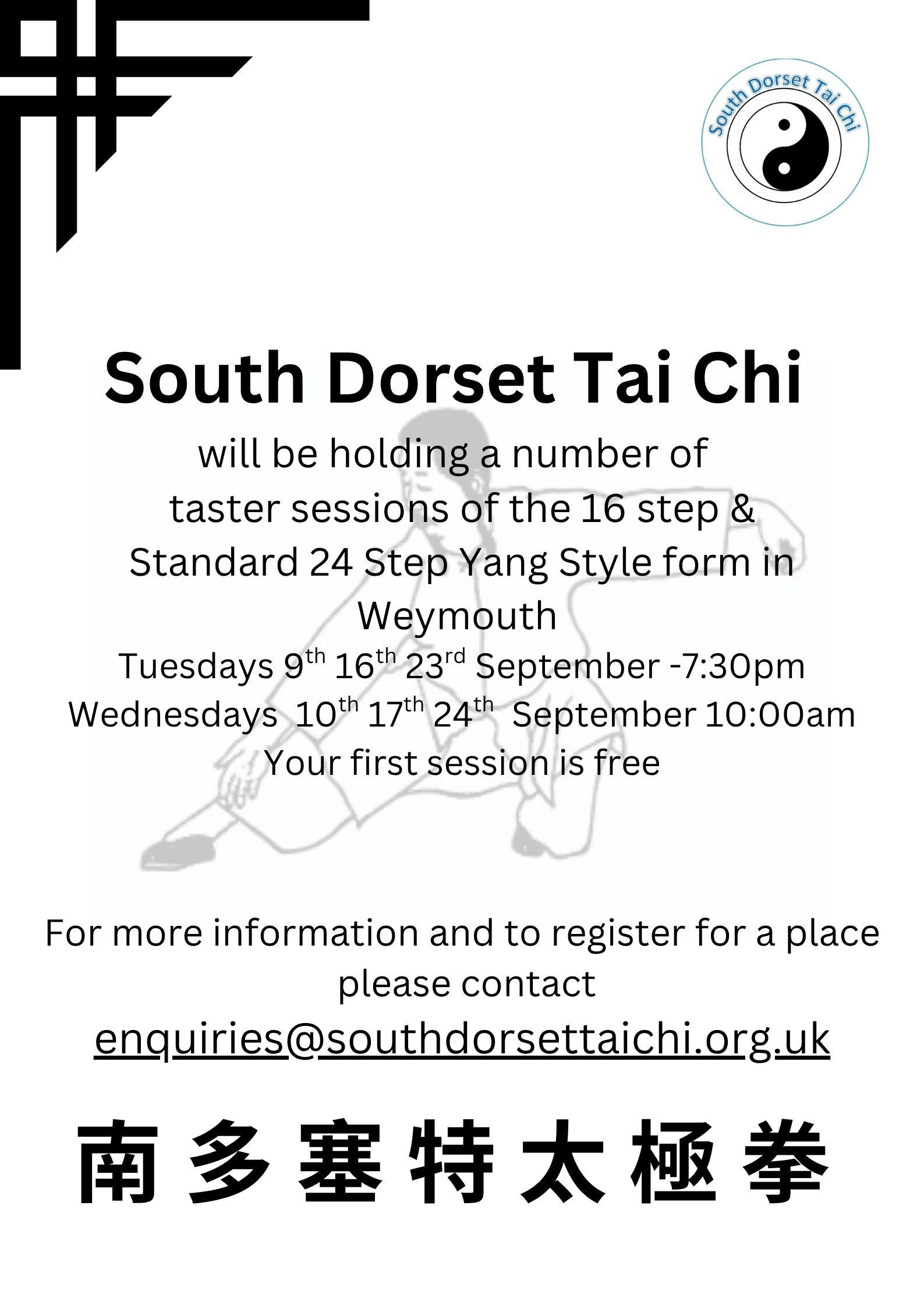 For more information and to book a place email enquiries@southdorsettaichi.org.uk